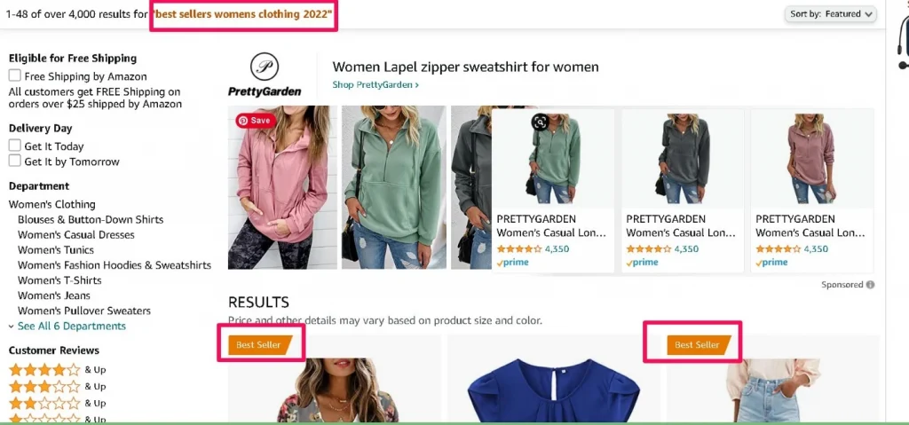 Letโs take a look here. If you want to know the best Amazon sellers for womenโs clothing, you can type โbest sellers womens clothing 2022โ. Then you will get the results based on the productโs popularity. The Amazon product description feature on each item shows the rank of the itemโs general popularity.